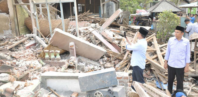 Ketua MPR RI Zulkifli Hasan didampingi Gubernur NTB M. Zainul Majdi meninjau reruntuhan bangunan rumah warga akibat gempa di Dusun Krujuk, Desa Pemenang Barat, Lombok Utara, NTB, Senin (27/8). Selain meninjau lokasi gempa, Zulkifli juga menyapa dan memberi bantuan kepada warga setempat. Humas MPR/RMOL