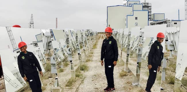 Ribuan cermin raksasa. Dipasang melingkar. Di atas tanah tandus. Satu cermin lebarnya 6 x 8 meter. Jumlahnya 20 ribu.