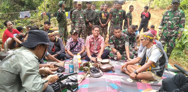 Menjelang pelaksanaan karya bakti pembukaan akses jalan baru yang menghubungkan Desa Batu Lapis dengan Desa Beginci Darat di Kecamatan Hulu Sungai, Kabupaten Ketapang, Kalimantan Barat, prajurit TNI dari Kodim 1203/Ketapang bersama warga menggelar ritual adat dan doa bersama untuk melakukan persiapan pelaksanaan karya bakti, Jumat (8/2). Pelaksanaan ritual adat dan doa bersama di titik nol ini dimaksudkan untuk memohon kepada Tuhan serta menjaga keariban lokal agar selama pelaksanaan karya bakti dapat berjalan lancar dan bermanfaat bagi rakyat. Pendam Pendam