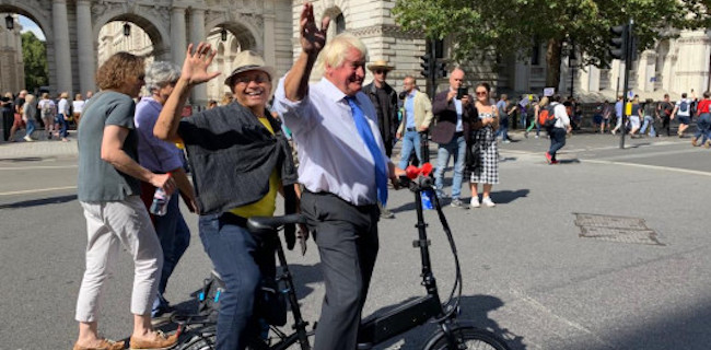 Hanya saja ia naik sepeda. Saya pun naik ke boncengan sepedanya. Di tengah puluhan ribu pendemo. Ternyata Boris Johnson yang bersama saya ini masuk golongan anti Boris Johnson.
