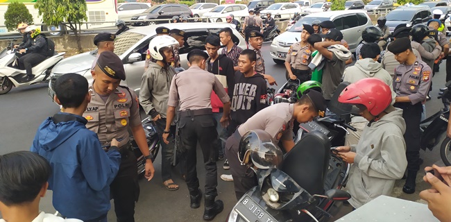 Polisi pun memeriksa seluruh kendaraan yang dikendarai para pelajar. Tak hanya itu, polisi pun memeriksa seluruh badan mereka untuk menghindari adanya senjata tajam yang dibawa.