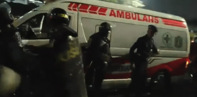 sweeping terhadap ambulans karena diduga menjadi tempat persembunyian para demonstran.