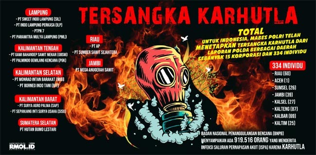 Korporasi yang telah ditetapkan sebagai tersangka pembakar hutan dan lahan berada di tujuh provinsi, yakni Lampung, Kalimantan Tengah, Kalimantan Selatan, Kalimantan Barat, Sumatera Selatan, Riau, dan Jambi.