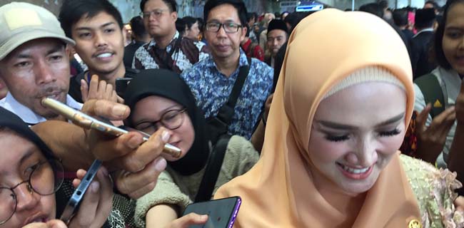 Selebriti Mulan Jameela yang juga istri musisi Ahmad Dhani dikejar wartawan usai menjalani prosesi pelantikan anggota DPR RI periode 2019-2024. Mulan tampak bungkam saat awak media melontarkan sejumlah pertanyaan. Raiza Andini/RMOL