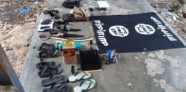 "Bahan-bahan pembuat bom yang terdiri dari larutan ARM strong, belerang, landasan korek api, rangkaian elektronik, pupuk urea, aki mobil, senter, charger, peralatan merakit bom serta bendera ISIS," papar Dedi.