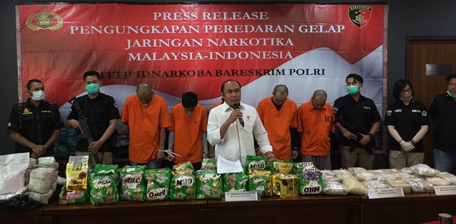 Direktur Tindak Pidana Narkoba Bareskrim Polri Brigjen Eko Daniyanto mengatakan, pihaknya mengamankan sedikitnya 70 kilogram narkoba jenis sabu, 40 ribu pil ekstasi, 1 kilogram ketamin dan empat botol berisi cairan codein. Beberapa narkoba diselundupkan dengan dibungkus minuman susu Milo.