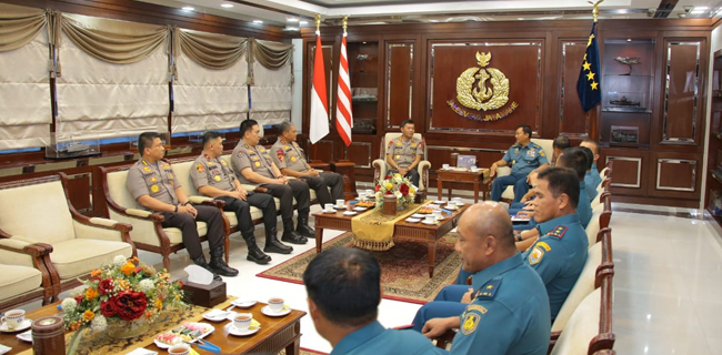 Kapolri tiba di Gedung Utama R.E Martadinata Mabes AL pada pukul 10.20 WIB disambut langsung oleh KSAL Laksamana Siwi Sukma Adji, beserta jajaran pejabat utama Mabes AL.