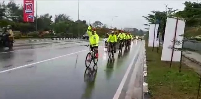 Rombongan berkeliling Kota Batam dimulai dari Kantor Polda Kepri. Di tengah guyuran hujan, mantan Kapolda Maluku ini tidak ragu bersepeda bersama anggotanya. Bahkan jenderal bintang dua ini beberapa kali terlihat menyapa pengguna jalan raya ketika dia melintas di jalanan.