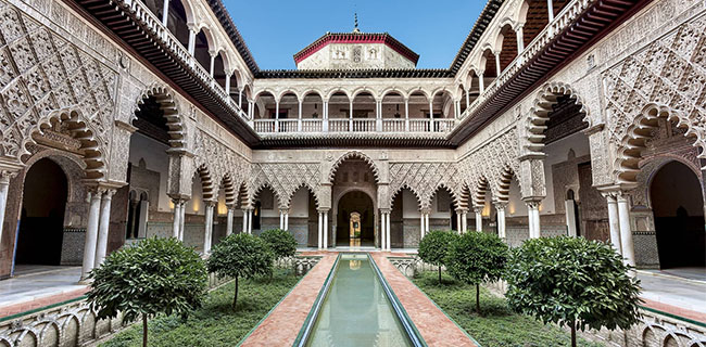 Sementara Alcazar merupakan istana tertua di dunia yang masih digunakan kerajaan Spanyol sampai masa kini berhias mahapesona keindahan tiada tara arsitektural Mudejar.