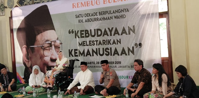 "Kita lihat bagaimana nilai-nilai yang diajarkan oleh Gus Dur kepada kita tentang persaudaraan, tentang kebersamaan, tentang bagaimana kita menghormati nilai-nilai kearifan lokal, tidak terjadi konflik sosial," ucap dia dalam sambutannya, Sabtu (28/12).
