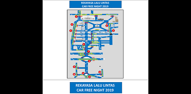 car free night akan berlangsung pada pukul 15.00 WIB hingga pukul 24.00 WIB.