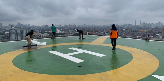 Helipad di Graha Badan Nasional Penanggulangan Bencana (BNPB), Jalan Pramuka No. 38, Jakarta Timur, Rabu (1/12), telah disiapkan untuk penerbangan Kepala BNPB Doni Monardo bersama Gubernur DKI Jakarta Anies Baswedan. Doni dan Anies akan meninjau lokasi banjir yang mengepung wilayah Jabodetabek sejak Rabu pagi. Mereka dijadwalkan akan terbang pada pukul 13.30 WIB. Humas BNPN