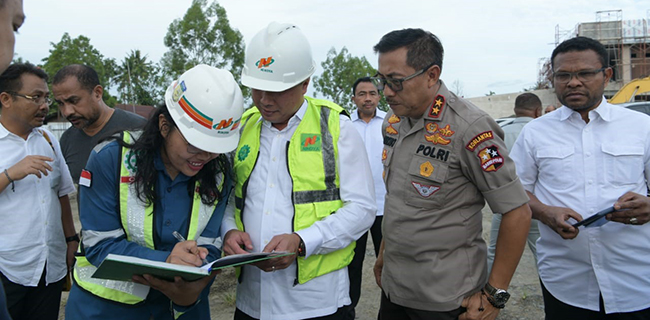 Selanjutnya rombongan bertolak ke pembangunan arena cricket dan lapangan hockey indoor dan outdoor di Kawasan Doyo.