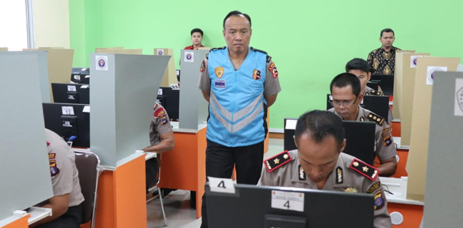 Kepala Biro Pembinaan Karir (Karo Binkar) SDM Polri Brigjen Pol Dedi Prasetyo meninjau langsung pelaksanaan tes CAT (Computer Assisted Tes) kemampuan menajerial dalam seleksi Sespimen T.A 2020 di Universitas Gunadarma, Jakarta, Senin (24/2).