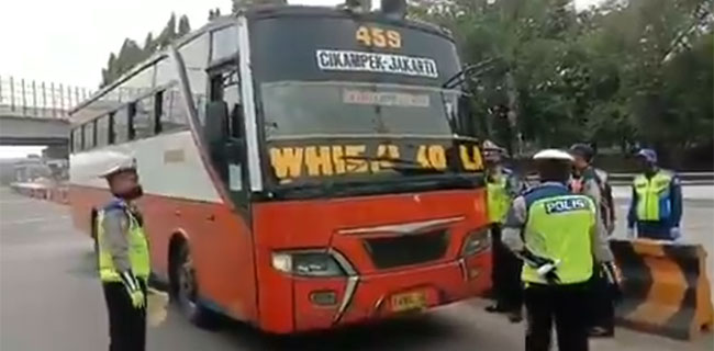 Di sana, polisi mendapati sebuah bus jurusan Cikampek-Jakarta yang tidak menaati kriteria sesuai kebijakan PSBB. Di mana, kendaraan bus atau angkutan umum hanya diperbolehkan mengangkut penumpang setengah dari jumlah kursi yang ada. Selain itu, penumpang juga diwajibkan untuk mengenakan masker.
