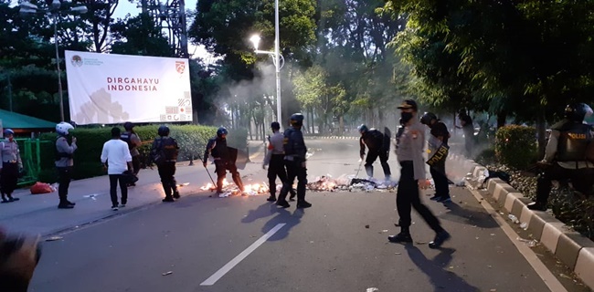 Pengejaran dilakukan lantaran puluhan orang itu melempari polisi dengan batu, botol minuman plastik, hingga melalukan pembakaran sampah di tengah Jalan Raya Gatot Subroto yang mengarah ke Slipi, Jakarta Barat.