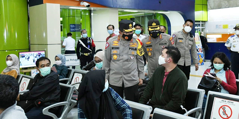 Dalam pengecekan ini, Kakorlantas turut melihat penerapan protokol kesehatan saat warga antre untuk rapid test antigen sebagai salah satu syarat bisa menaiki kereta.