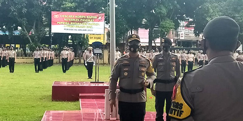 Atas dasar itu, Kepolisian Resor Serang Kota Polda Banten menggelar upacara korps raport kenaikan pangkat di lapangan hijau Mapolres Serang Kota, Senin (4/1).