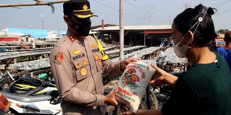 Kapolres Pelabuhan Tanjung Priok AKBP Putu Kholis Aryana menjelaskan, bantuan tersebut diberikan kepada masyarakat yang ekonominya terdampak akibat Pandemi Covid-19.