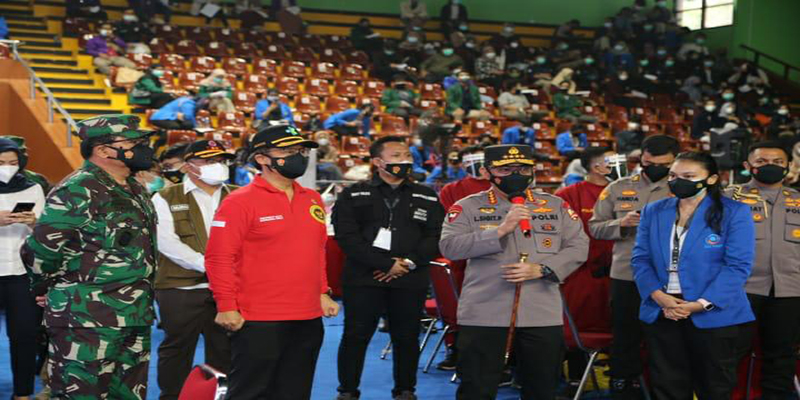 Selain Kapolri, vaksinasi massal ini juga ditinjau langsung oleh Panglima TNI Marsekal Hadi Tjahjanto dan Menteri Kesehatan Budi Gunadi Sadikin. Selain vaksinasi massal, kegiatan tersebut dimaksudkan untuk mengedukasi menyerukan mahasiswa berani vaksin dan pentingnya vaksinasi dalam penanganan Covid-19. Serta pentingnya penerapan protokol kesehatan untuk masyarakat.