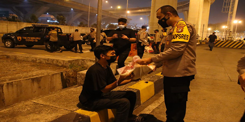 Kapolres Pelabuhan Tanjung Priok AKBP Putu Kholis mengungkapkan, cara humanis dengan memberikan bantuan paket sembako kepada warga yang masih bekerja. Sehingga dengan demikian, masyarakat dapat menghentikan aktivitasnya dan kembali ke rumah masing-masing.