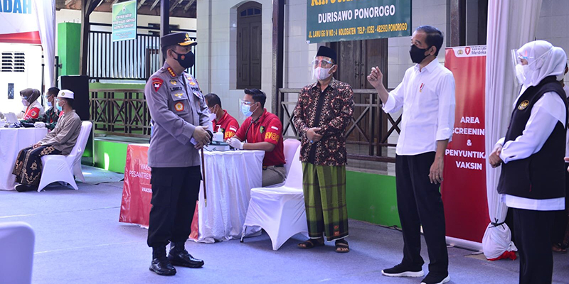 Demikian antara lain disampaikan Kapolri Jenderal Listyo Sigit Prabowo saat mendampingi Presiden Joko Widodo meninjau Vaksinasi Merdeka bersama rumah ibadah dan pondok pesantren (ponpes) secara serentak di seluruh Indonesia di Pondok Pesantren K.H. Syamsudin, Ponorogo, Jawa Timur, Selasa (7/9).