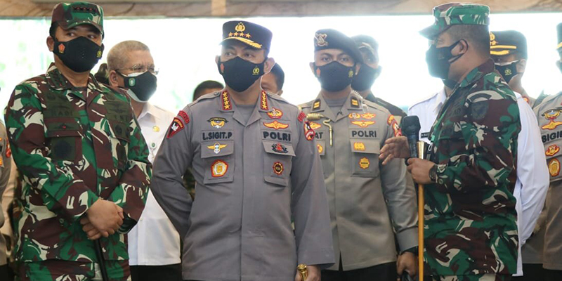 “Kami memantau di wilayah Kalbar saat ini ada 10 wilayah yang masuk PPKM Level 3 dan empat wilayah Level 2, sehingga tentunya diimbangi adanya kelonggaran aktivitas masyarakat. Tentunya dengan kelonggaran tersebut ada potensi akan meningkatkan laju pertumbuhan Covid sehingga mau tak mau strategi yang dilaksanakan bagaimana menguatkan Prokes,†kata Kapolri dalam tinjauannya.