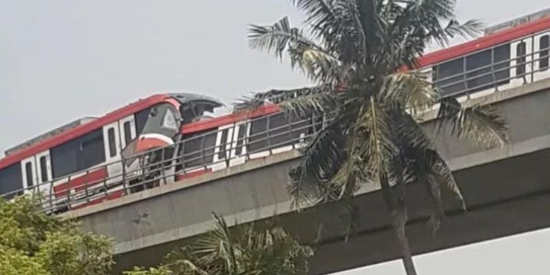 Rangkaian LRT mengalami kecelakaan saat melakukan uji coba di kawasan Munjul, Cibubur, Jakarta Timur (Jaktim), Senin (25/10). Berdasarkan informasi dari pihak PT INKA yang menjadi operator LRT menyebut masinis mengalami luka.