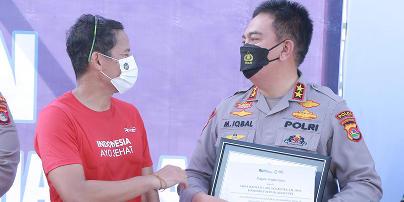 Menteri Pariwisata dan Ekonomi Kreatif (Menparekraf) Sandiaga Uno memberikan penghargaan atas kekompakan dan kerja Irjen Mohammad Iqbal Cs membebaskan lahan Pertamina Mandalika Internasional Street Circuit atau yang lebih dikenal Sirkuit Mandalika tanpa konflik dan juga tepat waktu.