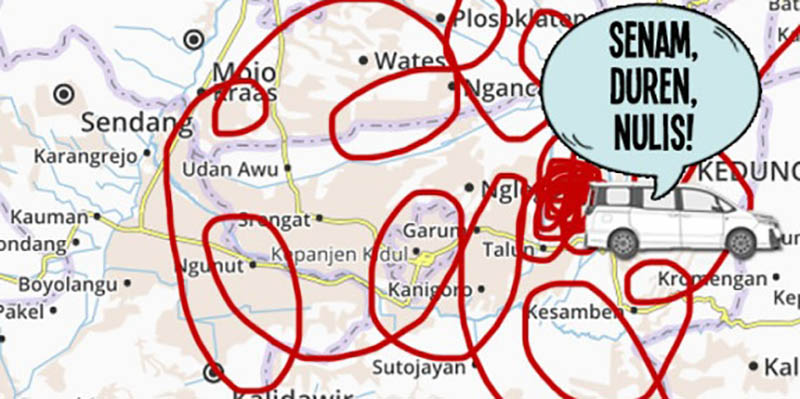 Dalam perjalanan 20 Km itulah naskah ini saya tulis. Seadanya. Kalau tidak layak dibaca, ya, jangan dibaca. Tidak ada lagi waktu menulis. Setelah dialog dengan guru-guru itu pun saya masih dijadwalkan ke desa lain lagi: untuk hadir di Lailatul Ijtima' di situ. Yang diadakan oleh pengurus ranting Nahdlatul Ulama desa itu.