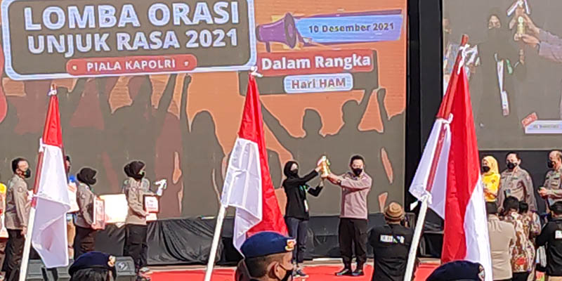"Pada hari ini Jumat pukul 16.05 WIB secara resmi lomba orasi unjuk rasa tingkat nasional memperebutkan Piala Kapolri secara resmi saya tutup," pungkas Jenderal Sigit.