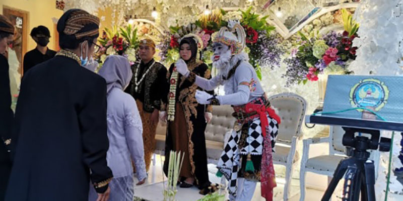 Ia juga bertugas menarasikan seluruh adegan di resepsi itu – dengan background suara gamelan dari HP-nya.