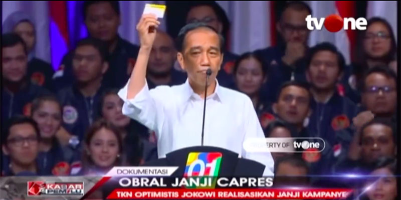 Dalam video tersebut, Presiden Jokowi tampak memamerkan sebuah kartu kepada para penonton. Kartu itu dia beri nama Kartu Sembako Murah.