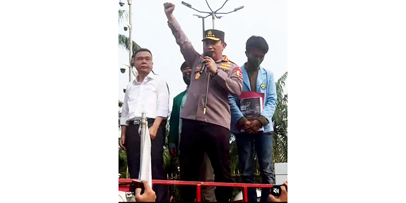 Kantor Berita Politik RMOL, Jenderal Listyo Sigit Prabowo naik ke atas mobil komando mahasiswa, orang nomor satu di kepolisian ini ikut berorasi. Hidup mahasiswa, pekik Kapolri saat diberikan kesempatan berorasi.