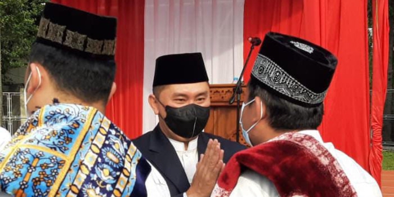 Irjen Fadil bersama keluarga menunaikan salat Idulfitri 1443 Hijriah di Stadion Presisi, Polda Metro Jaya, Jakarta Selatan.