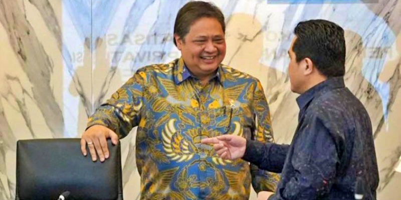 Menteri Koordinator Bidang Perekonomian Airlangga Hartarto menerima kunjungan Menteri Badan Usaha Milik Negara (BUMN) Erick Thohir di Kantor Kemenko Perekonomian, Jakarta, Rabu (12/10). Pada pertemuan itu, keduanya berkoordiansi terkait sejumlah agenda akselerasi pemulihan ekonomi nasional. Istimewa