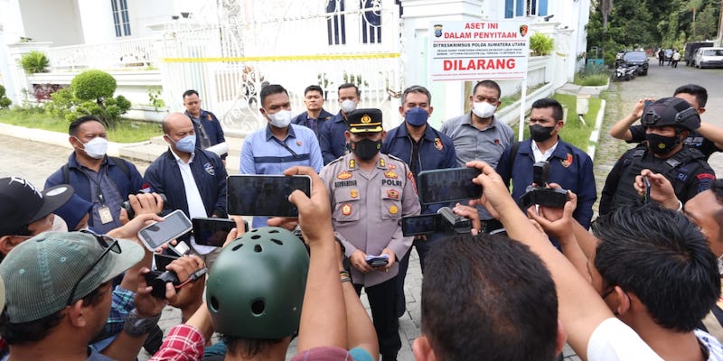 Kasubbid Penmas Polda Sumut AKBP Herwansyah mengatakan, rumah bercat putih ini disita karena diduga hasil tindak pidana pencucian uang (TPPU) hasil bisnis judi online.