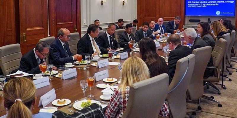 Menteri Koordinator Bidang Perekonomian RI Airlangga Hartarto dijamu makan siang oleh Kamar Dagang Amerika Serikat atau US Chamber Of Commerce, Senin (24/10). Pertemuan ini, digelar setelah perbincangan awal secara daring pada bulan Juli lalu. Istimewa