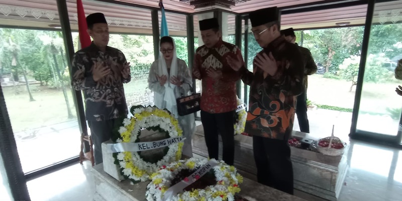 Dalam rangka menyambut Hari Koperasi, Ketua Dewan Penasihat Dewan Koperasi Indonesia (Dekopin) Prof. Jimly Ashidiqie didampingi Wakil Ketua Umum Dekopin Dr Ferry Juliantono, Agung sujatmiko, Sharmila dan para pengurus lainnya serta ratusan perwakilan gerakan koperasi di Indonesia berziarah ke makam Bapak Koperasi Indonesia, Bung Hatta di pemakaman Tanah Kusir, Jakarta Selatan, Minggu (7/7). Istimewa