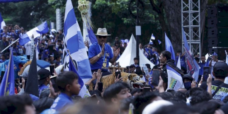 Kesebelasan Persib Bandung sukses meraih gelar juara BRI Liga 1 2024/2025. Perayaan kemenangan Persib digelar Sabtu 25 Mei 2025. Pawai dimulai dari Balai Kota Bandung menuju Gedung Sate yang disambut meriah puluhan ribu bobotoh. Sejak pagi, kawasan Jalan Wastukancana dan sekitarnya dipenuhi bobotoh mengenakan atribut khas biru serta spanduk bertuliskan “Persib Juara Back to Back”. Dok. Persib