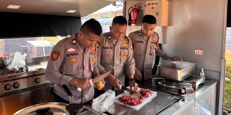 "Dapur lapangan mulai beroperasi sejak pukul 08.00 WIB. Menu yang disiapkan antara lain tongseng daging, kentang goreng, dan nasi putih," ujar Kasi Pammat AKP Ali Hajar kepada wartawan, dalam keterangan yang dikutip Senin 9 Juni 2025.