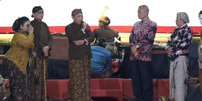 Sementara itu, Kapolri terlihat mengenakan pakaian adat Jawa mulai dari atasan beskap dengan bawahan jarik batik, sampai dengan blangkon di kepala.