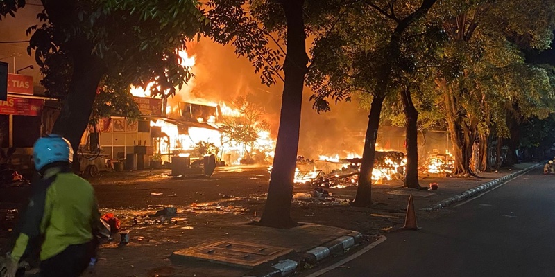 Tiga buah mobil pemadam kebakaran diturunkan di sekitar lokasi dan tampak puluhan anggota polisi berjaga untuk antisipasi terjadinya kericuhan susulan. Api sudah padam sekitar pukul 00.15 WIB, Jumat dini hari, 12 Desember 2025.