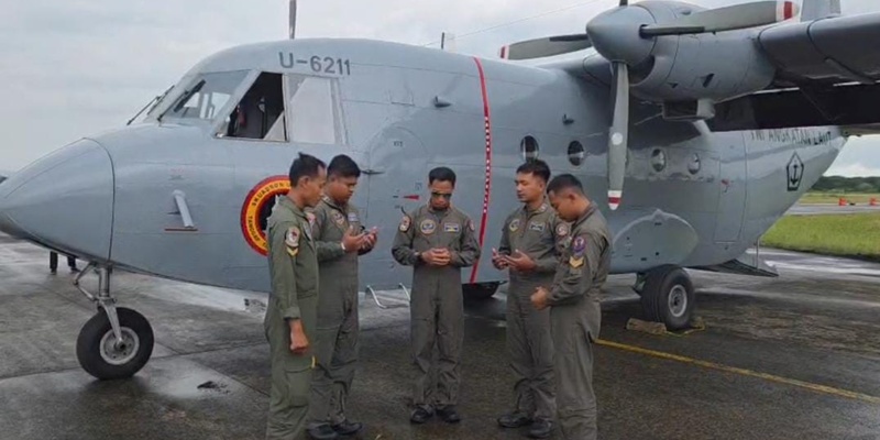 Para pilot dan kru Pesawat NC 212-200 Aviocar nomor U-6211 milik TNI AL memanjatkan doa usai mendarat di Bandara Rembele, Takengon, Kamis, 25 Desember 2025. Penerbangan ini dalam misi kemanusiaan mengangkut logistik untuk korban bencana banjir bandang di Takengon, Aceh. Mayor Laut (P) Musmuliadi selaku Pilot Pesawat U-6211 menyampaikan bahwa pelaksanaan misi berjalan dengan aman, lancar, dan sesuai dengan rencana. (Foto: Dispenal)