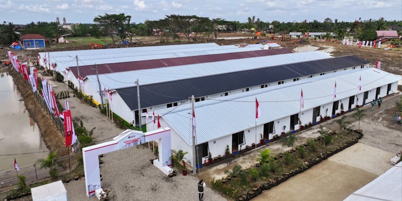 600 unit Hunian Danantara disiapkan sebagai tempat tinggal sementara yang aman dan layak bagi warga terdampak bencana selama proses rehabilitasi dan rekonstruksi berjalan di Kampung Simpang 4, Kecamatan Karang Baru, Aceh Tamiang. Keberadaan hunian ini diharapkan mampu memberikan rasa aman sekaligus mempercepat pemulihan sosial masyarakat setempat. (Foto: Puspen TNI)