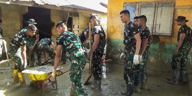 Taruna Akademi TNI yang tergabung dalam Satuan Tugas Taruna (Satgastar) Latihan Integrasi Taruna Wreda Nusantara (Latsitarda Nusantara) ke-46 melaksanakan kegiatan karya bakti pembersihan di SD Negeri 1 Tualang Cut, Kecamatan Manyak Payed dan SD Negeri Rantau Pauh, Kecamatan Rantau, Kabupaten Aceh Tamiang, Sabtu, 17 Januari 2026. Kegiatan ini merupakan bagian dari pengabdian Taruna Akademi TNI kepada masyarakat dalam rangka membantu pemulihan wilayah pascabencana banjir. (Foto: Puspen TNI)