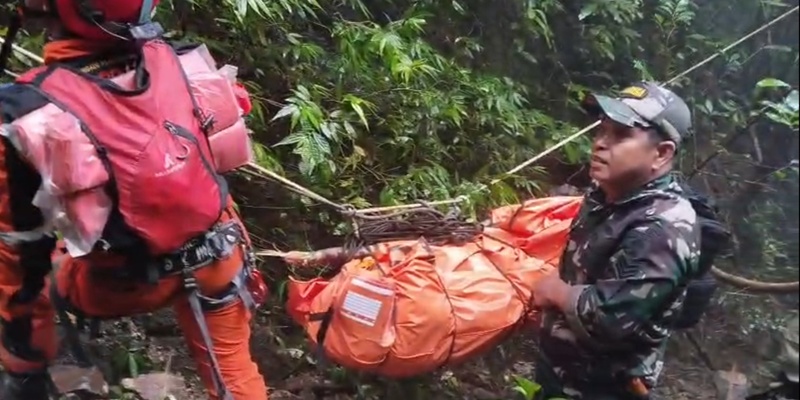 Prajurit TNI dari Kodam XIV/Hasanuddin berhasil menemukan dua korban kecelakaan pesawat ATR 42-500 yang jatuh di wilayah pegunungan Bulusaraung, Kabupaten Pangkep, Senin, 19 Januari 2026. Operasi pencarian dilaksanakan di medan pegunungan yang terjal, kawasan hutan lebat, serta dihadapkan pada kondisi cuaca yang tidak menentu. (Foto: Puspen TNI)