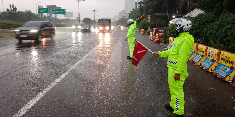 Personel berasal dari Brimob, Direktorat Lalu Lintas, dan Polair yang terus berjaga di sejumlah ruas jalan utama saat banjir.