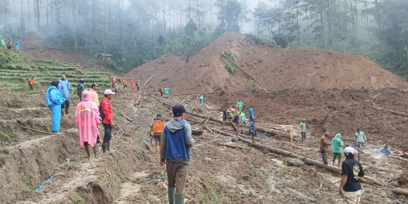 Tim SAR gabungan bersama masyarakat sekitar melakukan pencarian korban tanah longsor yang terjadi di area Perhutani Desa Bongas, Kecamatan Watukumpul, Kabupaten Pemalang, Jawa Tengah pada Minggu, 25 Januari 2026. Dalam peristiwa ini, dua orang yang merupakan bapak dan anak menjadi korban. (Foto: BPBD Pemalang)