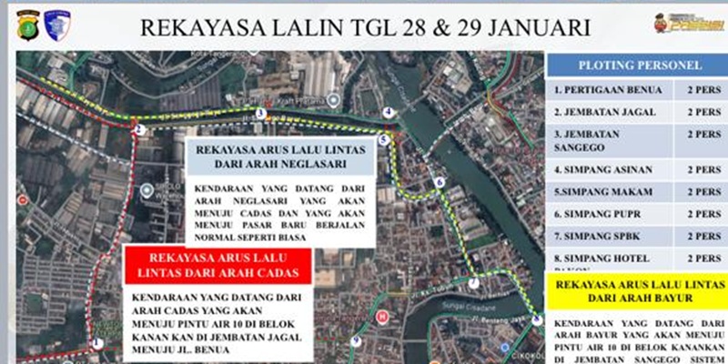 - Pengalihan arus dari arah Cengkeh sisi utara ke arah Jalan Nelayan (Jembatan Intan).